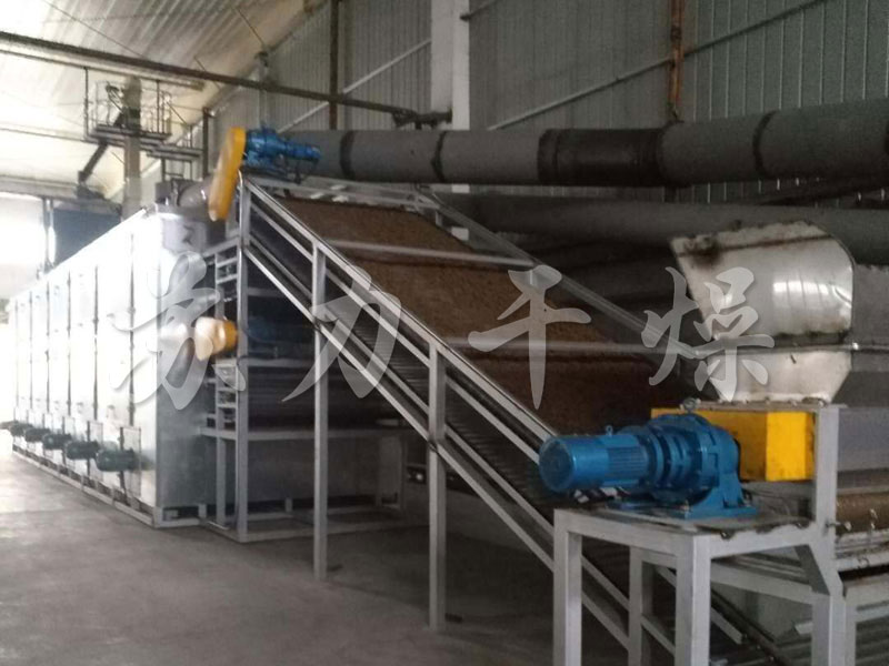 干燥機(jī)工作時(shí),冷空氣通過熱交換器進(jìn)行加熱,采用科學(xué)合理循環(huán)方式,使熱空氣穿流通過床面上的被干燥物料進(jìn)行均勻的熱質(zhì)交換,機(jī)體各單元內(nèi)熱氣流在循環(huán)風(fēng)機(jī)的作用下進(jìn)行熱風(fēng)循環(huán),后排出低溫高濕度的空氣,平穩(wěn)高效地完成整個(gè)干燥過程。